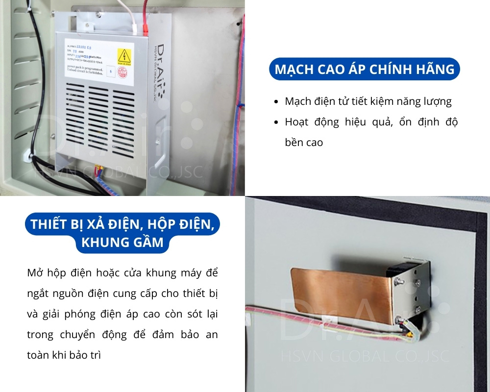 Nhờ cấu tạo này, máy lọc tĩnh điện Dr.Air KTA có khả năng loại bỏ hiệu quả các hạt bụi mịn, khói và các chất ô nhiễm khác, mang lại không khí trong lành và sạch sẽ.